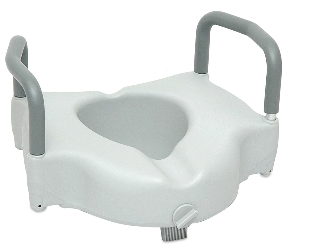 - Adjustable front locking mechanism tightens easily with one hand and fits most toilets. Prevents shifting of seat when transferring.