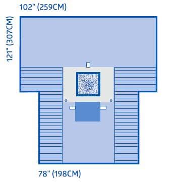 - Cesarean Section Surgical Drape with Pouch (102" x 121" x 78", 259 x 307 x 198 cm) includes: Absorbent reinforcement, 20" x 15" (51 x 38 cm); Block incise, 15" x 13" (38 x 33 cm); 360° fluid-control pouch, 38" x 28" (97 x 71 cm) with formers and contoured armboard covers and Hook-and-loop line holders