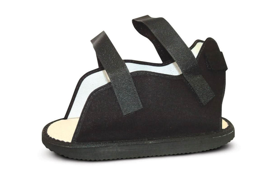 - Canvas Cast Sandal: Made of a quality canvas duck upper for durability, two hook and loop closures over the top of the foot and one above the heel for a secure fit, thick rocker sole is made of a lightweight EVA, open toe and open heel for comfort and ventilation, heel and toe pitch promotes a normal gait. Large. 12" (30.5 cm) L, 5-1/4" (13.3 cm) W. Shoe size: Men's 12-15-1/2.