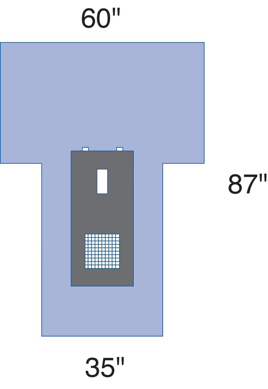- Pack includes: reinforced table cover, 44" x 76" (112 x 193 cm); hand towel 14" x 22" (35.6cm x 56 cm); two leggings, 31" x 48" (79 x 122 cm) and cystoscopy T-drape, 60" x 35" x 87"(152 x 89 x 221 cm)