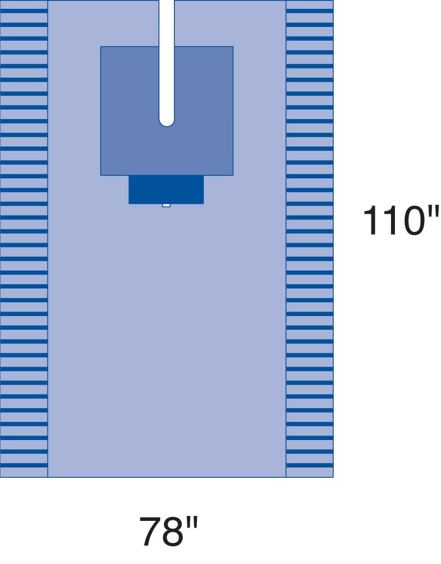 - EENT split drape features absorbent reinforcement, 22" x 23" (56 x 58 cm); split with adhesive, 3-1/2" x 24" (9 x 61 cm); instrument pad and hook-and-loop line holder; drape available separately as DYNJP7001, sterile
