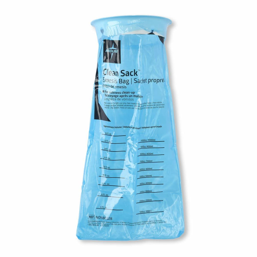 - Single-use emesis bag helps reduce risk of spills and control odor from vomitus