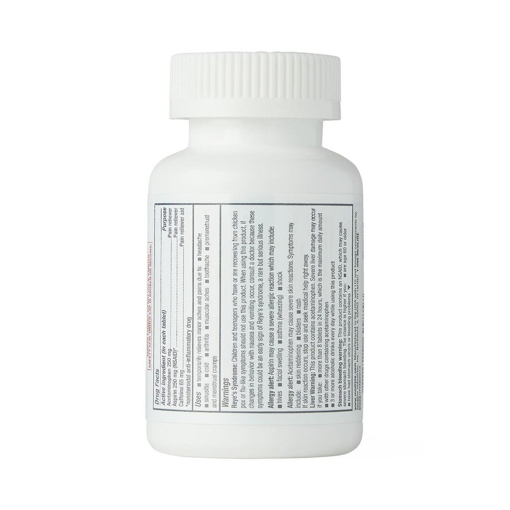 - Medline Extra Strength Pain Relief Caplets, Acetaminophen 250 mg + Aspirin 250 mg + Caffeine 65 mg, 100/Bottle