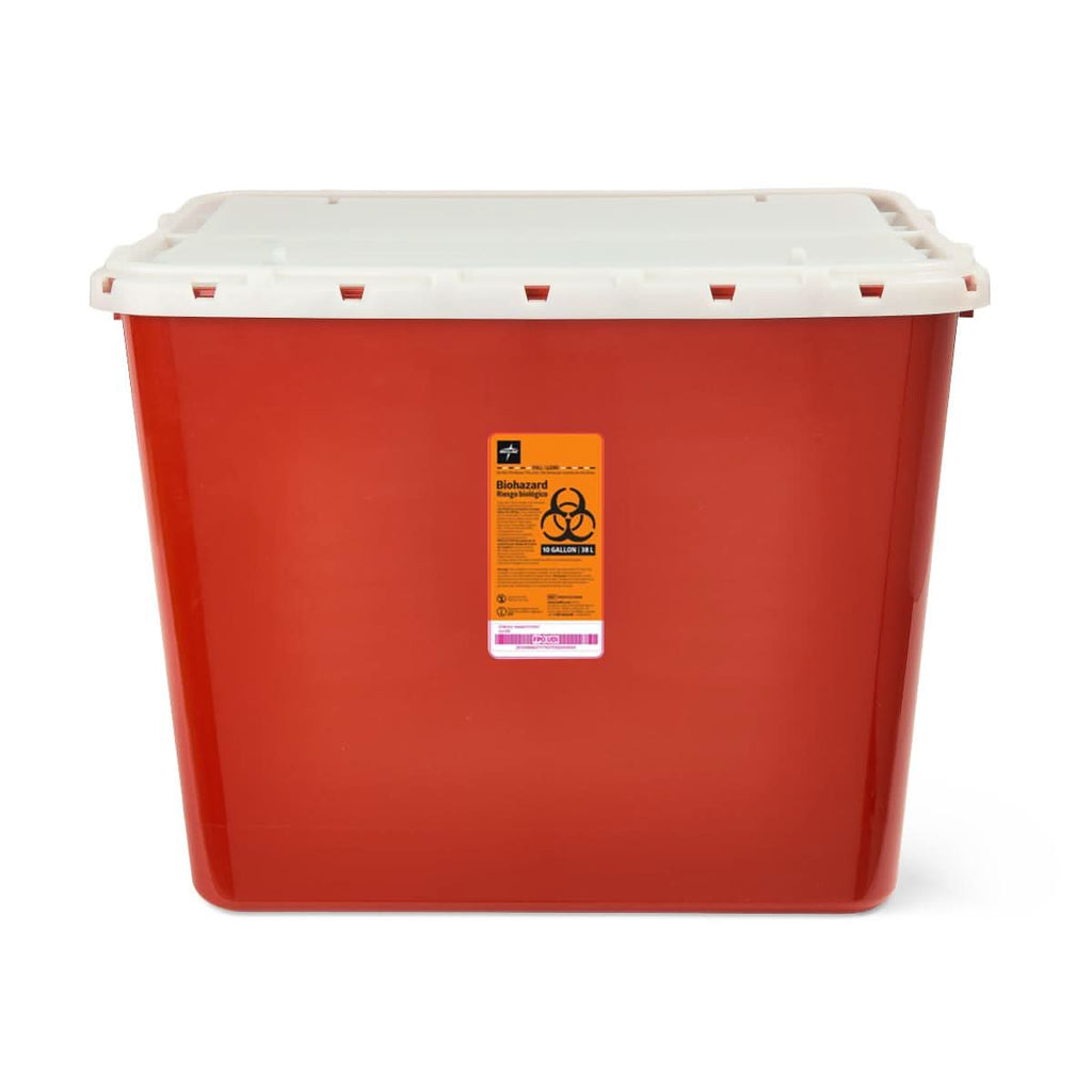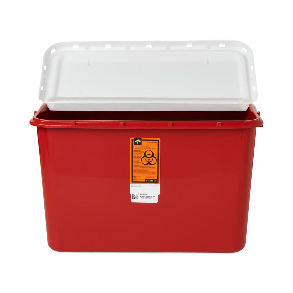 - Sharps Containers, Red, Hinged Top Lid, 8 gal.