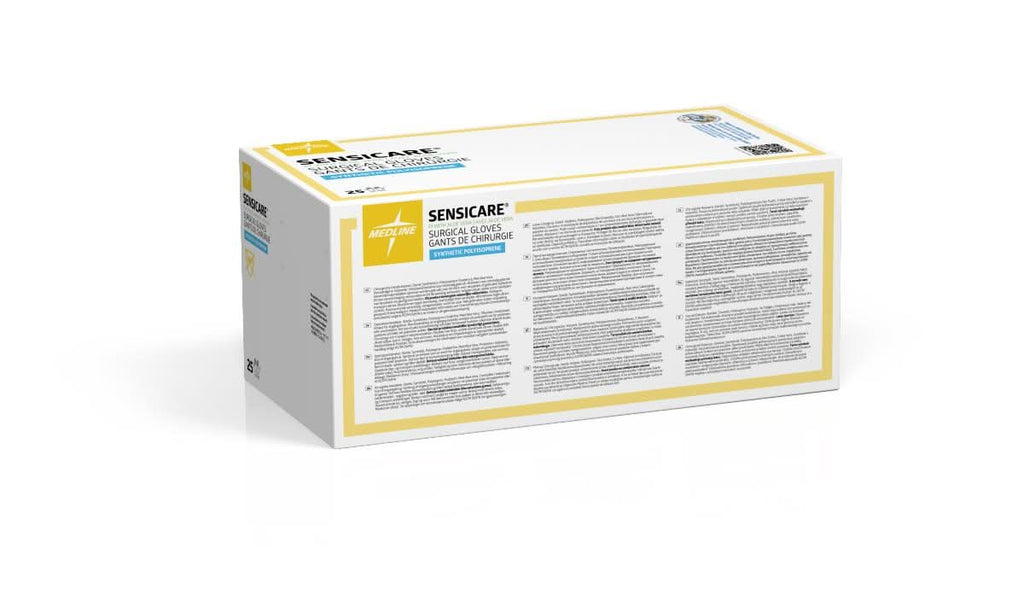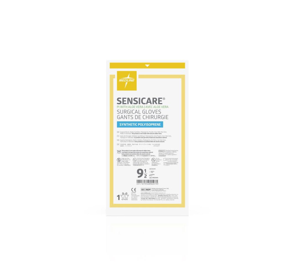 - SensiCare with Aloe: SensiCare revolutionized the medical glove industry as the first Synthetic Polyisoprene surgical glove on the market. Medline is the only surgical glove manufacturer that makes its own raw material Polyisoprene, called Isolex, ensuring you a safe, quality product. SensiCare is coated with 100% pure aloe vera to help soothe and moisturize dry, irritated skin caused by frequent hand washing and glove-wearing. Glove Specifications: Material Isolex Polyisoprene, Thickness* 10 mils; Texture/Grip Smooth, Color White, Donning Agent Synthetic Polymer Coating Size 5.5.