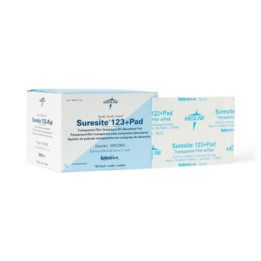 - SureSite123+ Pad Transparent Dressings, 2.4" x 2.8"