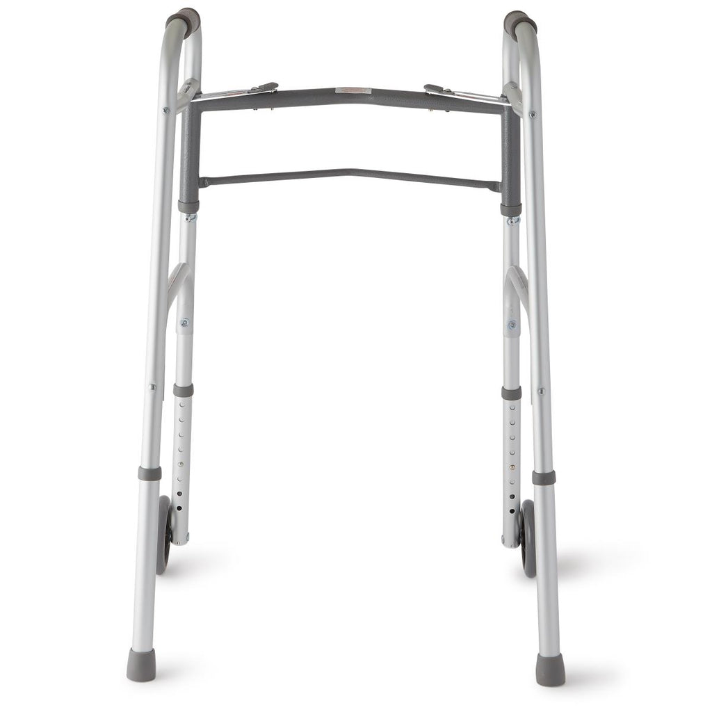 - 2-Button Folding Walker with 5" Wheels, Aluminum