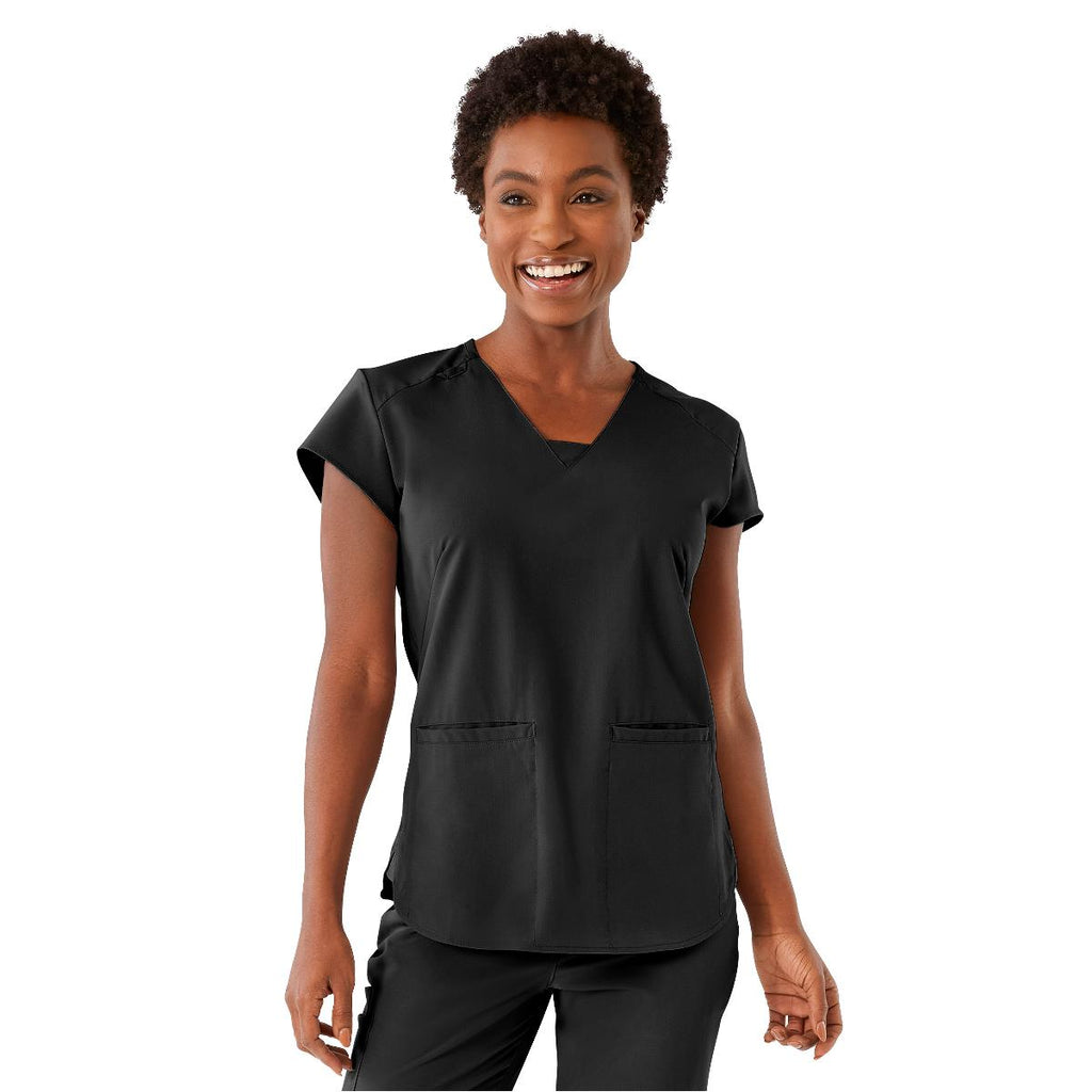 - Monroe AVE Women's V-Neck Scrub Top, 2 Pockets, Black, Size L