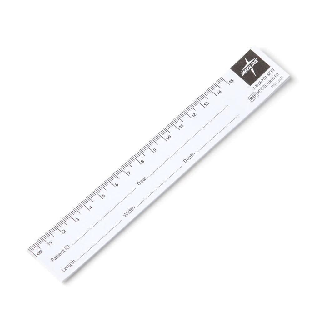 - Description: Wound Measuring Rulers: These disposable paper rulers use centimeters and millimeters to document wound dimensions. Each contains ample space for recording patient name, date, and length, width and depth of wound. Perfect for documentation used in photos of wounds. 25 sheets/pad. 10 pads/pack.